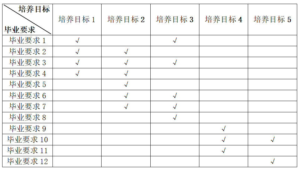 毕业要求支撑培养目标矩阵表