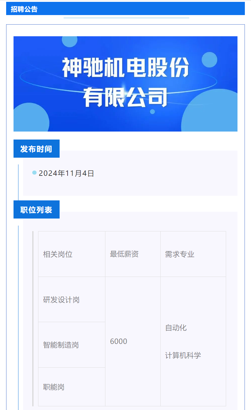 点击文字跳转至神驰机电股份有限公司招聘公告