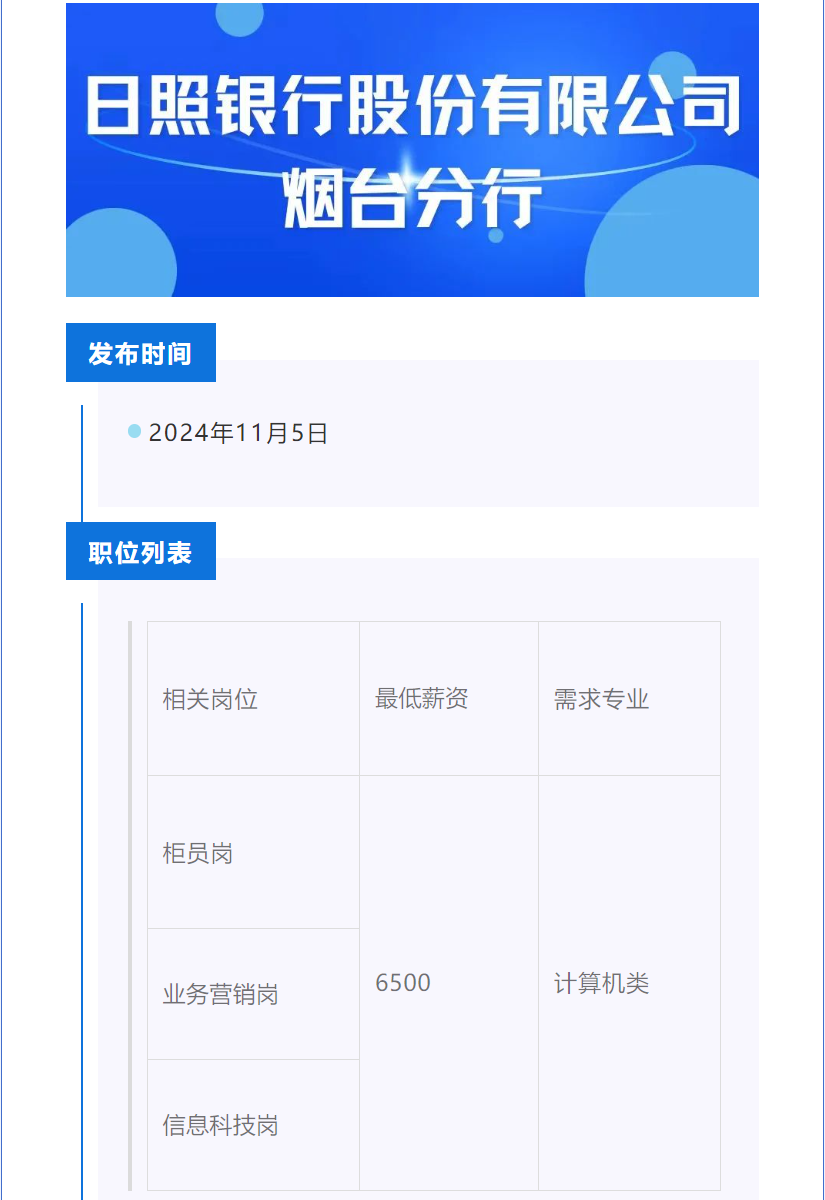 点击文字跳转至日照银行股份有限公司烟台分行招聘公告