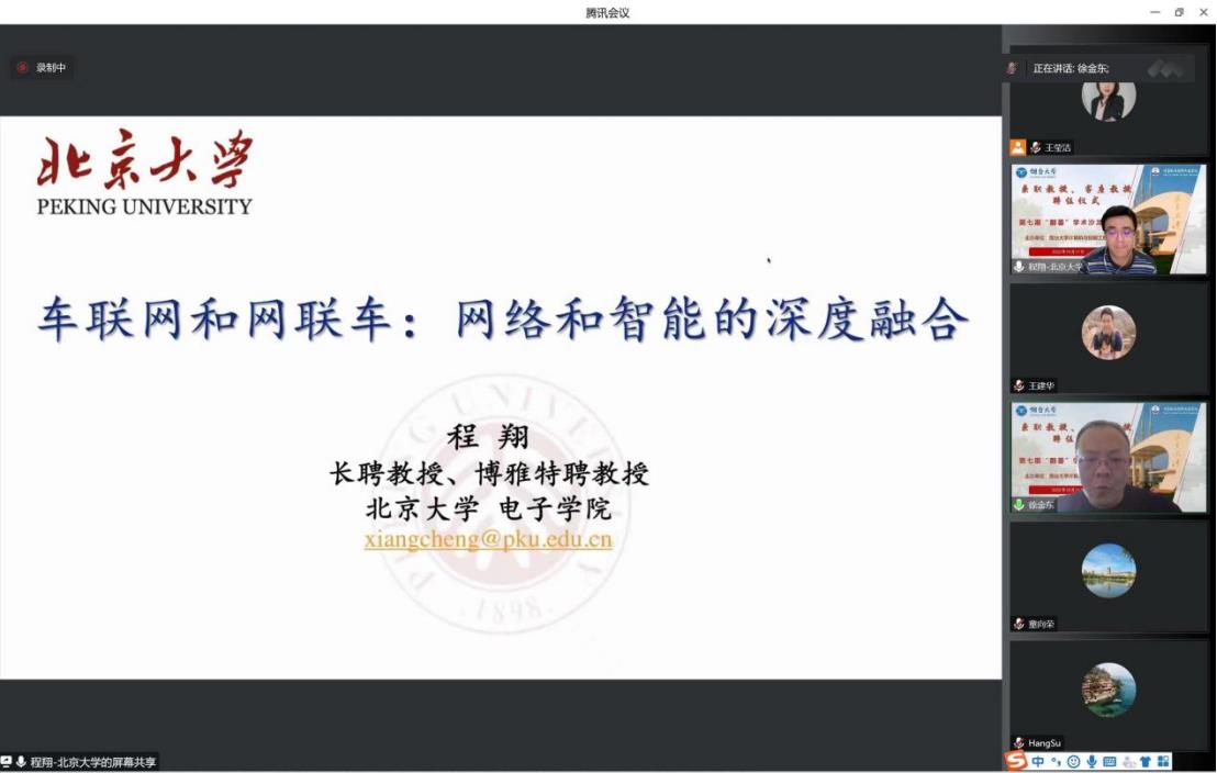 在“群荟”学术沙龙活动中,程翔作了题为“车联网和网联车:网络和智能的深度融合”的学术报告,徐金东教授主持。程翔在报告中闸述了车联网和网联车的概念,指出通信和感知协同融合是未来车联网和网联车的核心技术。他从车联网角度重点闸述了车联网毫米波通信相关内容,从网联车角度,重点介绍网联协同感知和认知技术,展望了社群智能构架下的车联网和网联车未来研究方向。