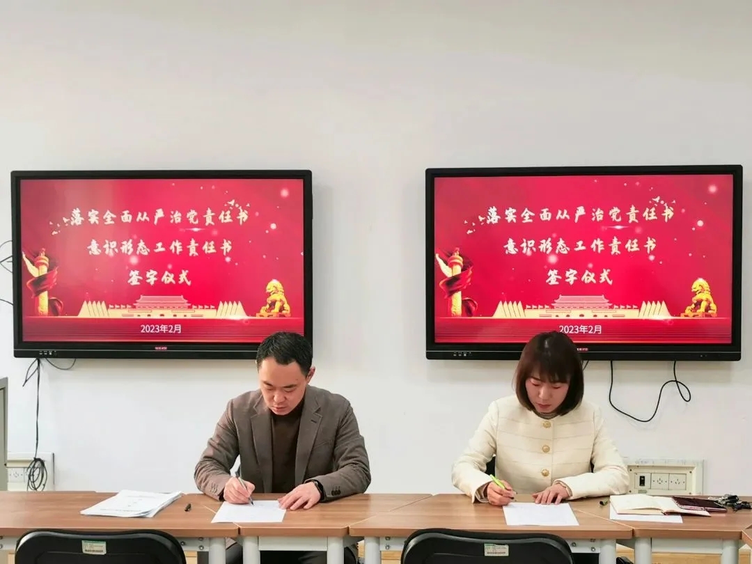 述职结束后,段昕代表党总支与各党支部书记签订了《落实全面从严治党主体责任书》和《意识形态工作责任书》。