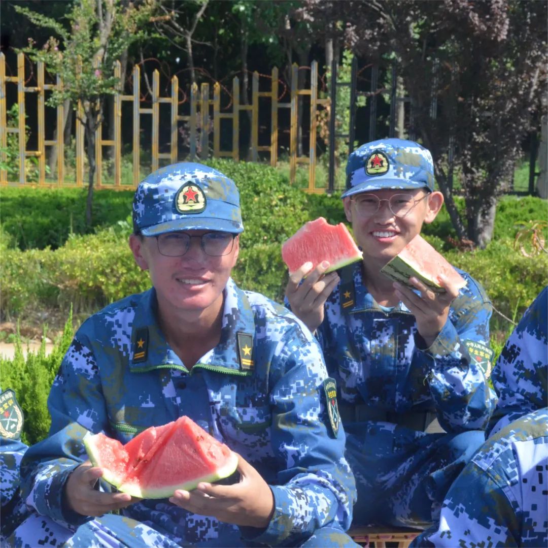 新生们纷纷表示,瓜甜心更甜。在炎炎烈日下,在队列操练中,这一丝清凉浸沁心底,一定不负嘱托,不怕困难,在军训中展现计控学子风采。
