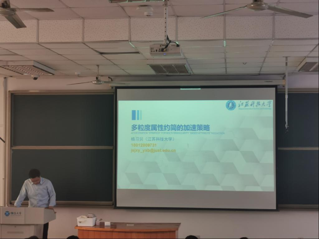 然后,杨习贝教授以“多粒度属性约简的加速策略”为题,介绍了以参数化多粒度与信息融合多粒度为基础,展开的属性约简相关问题的研究,进一步地,为提升多粒度约简搜寻的效率,介绍了一些能够加速多粒度约简求解的实用策略。