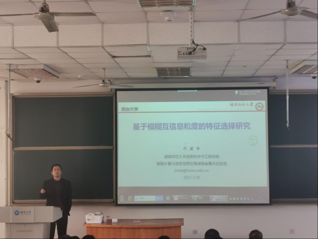 首先,代建华教授以“基于模糊信息度量的特征选择方法”为题,针对连续型数据的特征选择,考虑模糊情况下特征的相关性和冗余性,介绍了具备单调性的模糊粒度度量结构。同时,通过融合独立分类信息、对称不确定性等概念,介绍了基于模糊独立分类信息的粒度特征选择算法以及基于规范化模糊信息权重的特征选择算法。