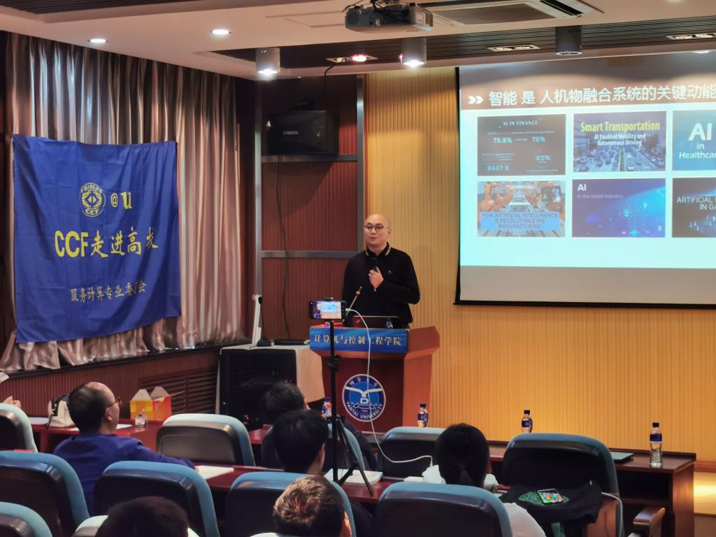 会议伊始,4k影视 院长助理王莹洁副教授作为会议主持,介绍了本次报告会的筹备情况。CCF服务计算专委会副主任委员李兵教授为会议致辞,他表示:本次CCF@U以线下的形式走进4k影视 ,受到CCF服务计算专委会的高度重视,希望将服务计算新理念带入4k影视 ,最后预祝会议圆满成功。