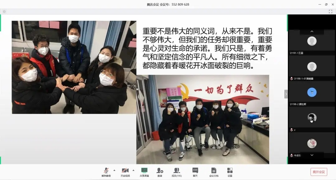 为了让同学们了解战疫前线的志愿服务工作,引导同学们学习身边的战疫榜样,激励同学们肩负起时代责任与担当,4k影视 于5月4日通过腾讯会议平台开展了“青春在战疫中绽放”主题宣讲会。