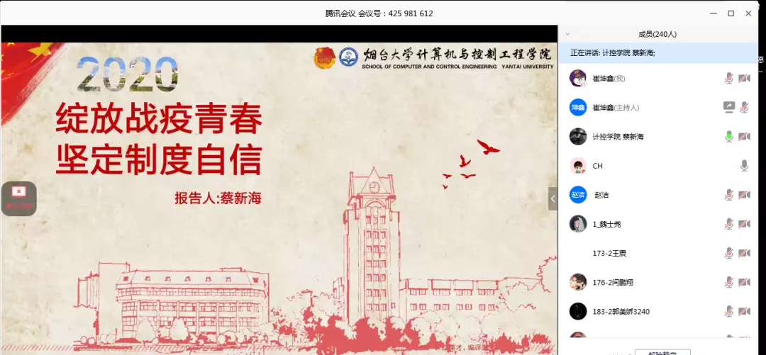 于5月3日晚通过腾讯会议开展了“绽放战疫青春·坚定制度自信”主题教育活动。