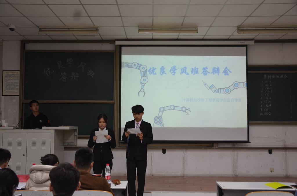 为了贯彻落实学校对于“文明烟大”建设的倡议,加强4k影视 学风建设,展现各班级积极向上的精神风貌,4k影视 于3月29日晚上在综合楼112召开自律学风月优良学风班答辩会,团委书记丁晓丹、团委老师宋健栋出席了此次会议。