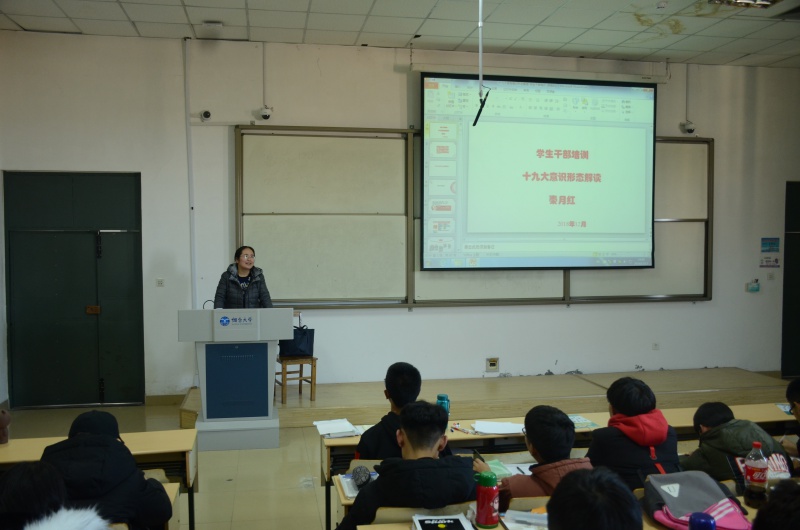 为使学生干部正确认识到十九大意识形态的意义,维护党的核心领导地位,树立学生正确价值观,计算机与控制工程学院于12月12日在七教604室举行十九大意识形态解读会议,由党总支书记秦月红担任主讲人。