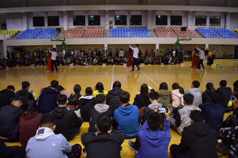 随着观众和参舞人员的陆续进场,晚会拉开了序幕,在由核装备与核工程学院表演的开场舞之后,现场气氛开始活跃起来。随后主持人宣布舞会正式开始,一支节奏轻快优美的音乐奏起,由教练领舞在舞台上翩翩起舞,很多同学受到音乐的感染也带着舞伴进入舞池跳舞,精彩绝伦。舞会期间,各学院都为大家准备了精彩的表演,其中计算机与控制工程学院两位男生为大家献上了歌曲《十年》,带动了晚会的氛围,而陈嘉琦一首《新的心跳》将晚会推上高潮。晚会期间还举行了众多小游戏,踩气球环节和两人配合运气球环节更是使得活动气氛越来越热烈,在接下来的自由邀舞环节中新生们毫不羞涩,积极展示着自我。最后,在抽奖活动之后,主持人宣布了今晚的最佳搭档及舞王舞后奖,至此本次交谊舞晚会圆满结束。