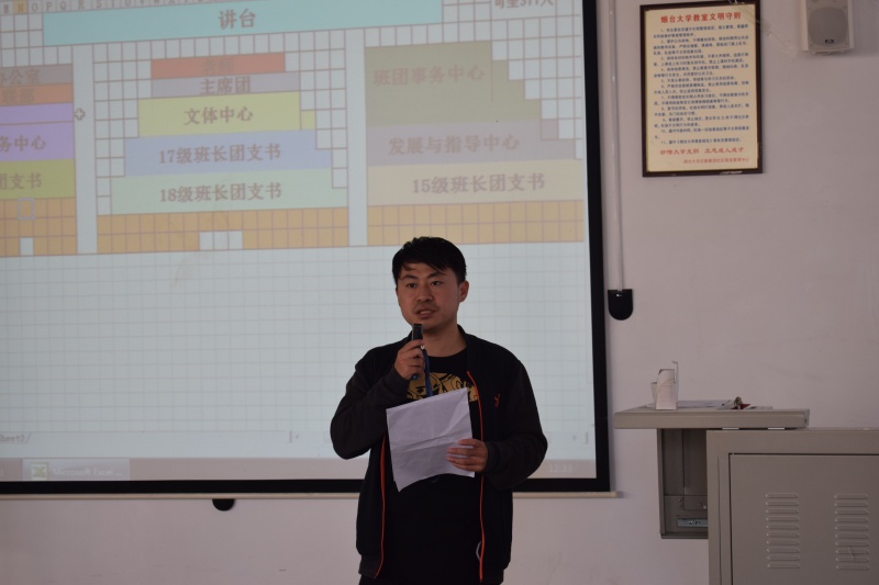 全体团学组织成员以及班级干部准时到达会场,经签到确认人员后,会议正式拉开序幕。会议伊始,由刘柏君上台发言,他详细地讲解了评比国家励志奖学金、省政府励志奖学金以及国家助学金的条件,并重点强调了评比奖学金的时间以及成绩排名,他要求在场班级干部务必核实好相关信息。接下来,宋健栋在宿舍卫生方面提出了几点要求,他谈到,保持好宿舍卫生才能有一个好的生活环境,从而提高学习效率。随后,丁晓丹从假期以及党课培训两方面进行了讲解,她鼓励学生们积极向党组织靠拢,为党的建设做贡献。她总结了上一阶段工作中的不足,希望全体学生干部吸取经验,再接再厉,为新学期的优良面貌贡献出自己的力量。会议接近尾声,团学组织各部门代表依次上台讲解新阶段的任务以及要求,并希望18级新生能够配合好相关工作。至此,此次会议圆满结束。