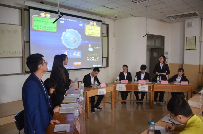 本次明辩会由2018级各班代表参加,旨在通过17级辩手的精彩辩论促使新生了解辩论赛流程和注意事项,同时弘扬社会主义核心价值观。在全体人员准时签到入场后明辨会正式拉开了序幕。首先由主席宣布辩题,辩手们针对“弘扬社会主义核心价值观,高调弘扬和低调实践哪个重要”的辩题组成了正反两支队伍,之后正方辩手以“只有高调弘扬价值观才能利用有限的时间影响到更多人”为切入点发起攻势,反方则从“实践是一切的基础”出发将对方的言论剖析,在随后的攻辩环节中正方引用雷锋精神等论据支撑自己的观点,而反方则通“三鹿奶粉事件”的例子加以反驳。双方争锋相对现场气氛迅速升温。接着进入到自由辩论环节,双方在3分30秒内互相对驳盘问,精辟的措辞将全场气氛推至高潮。总结陈词的环节过后辩手们针对新生提出的疑问进行详细解答。至此,本场明辩会圆满结束。