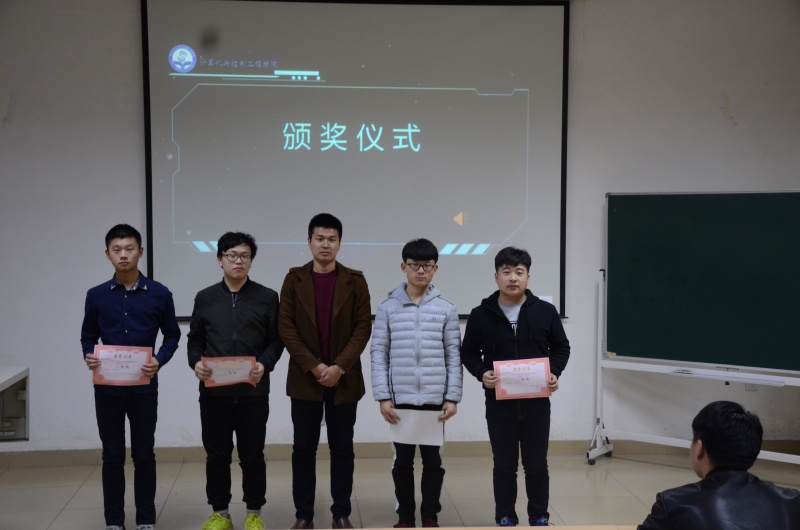 本次颁奖仪式由各班推选出观众代表群准时参加,由主持人作开幕介绍后,表彰会正式开始。活动共分为三个颁奖环节,首先由刘柏君分别为个人奖获得者颁发证书,以资鼓励。其中,作为唯一一名在规定时间内完成十道题目的学生,164-1班的李超被特邀上台发言,他讲述了自己从入学至今学习编程的经历,他强调,除个人努力外,投入学习的热情与兴趣也是必不可少的一部分。随后进行女生奖的颁发,女生在计算机专业中占少部分,正是其不容小觑的思维能力才促使女生也可以取得优异成绩。身为获奖者的一员,163-2班的吴雪莹与大家分享了她对编程的看法和建议,她坦言:“世界上最不缺钱的就是通过努力去实现自己目标的人,所以我们更要加倍努力。”在她看来,找到适合自己学习的方法,就是找到了成功的钥匙,吴雪莹字里行间中透露出来的从容与自信,正展现了计控女生巾帼不让须眉的风采。在接下来的团体奖颁布环节,163-1、163-2及165凭借其集体实力斩获此奖。最后,由刘柏君上台做出总结,他先介绍了这次比赛的内容、规则及流程,随后针对奖项评选条件作出具体讲解,同时希望同学们在以后的各项赛事中能够再接再厉。至此,表彰大会圆满结束。