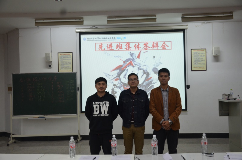 为推进优良学风建设,同时加强班级管理经验交流,4k影视 于10月17日晚在综合楼423举办了先进班集体答辩会。辅导员蔡新海、刘柏君和宋健栋担任评委出席了本次大会。