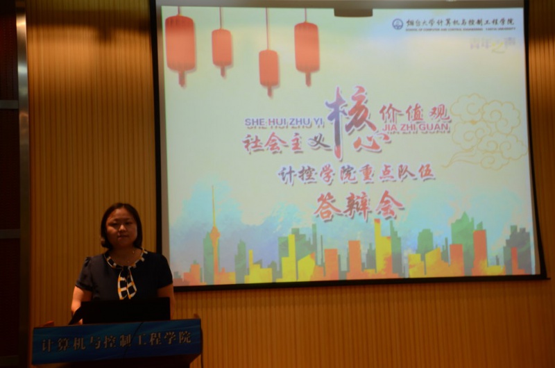 于9月18日晚在钟楼6205举办了社会主义核心价值观--重点队伍答辩会,党总支副书记贺毅,团委书记刘晓婷,分团委学生会指导老师蔡新海,辅导员刘柏君出席了本次答辩会并担任评委。
