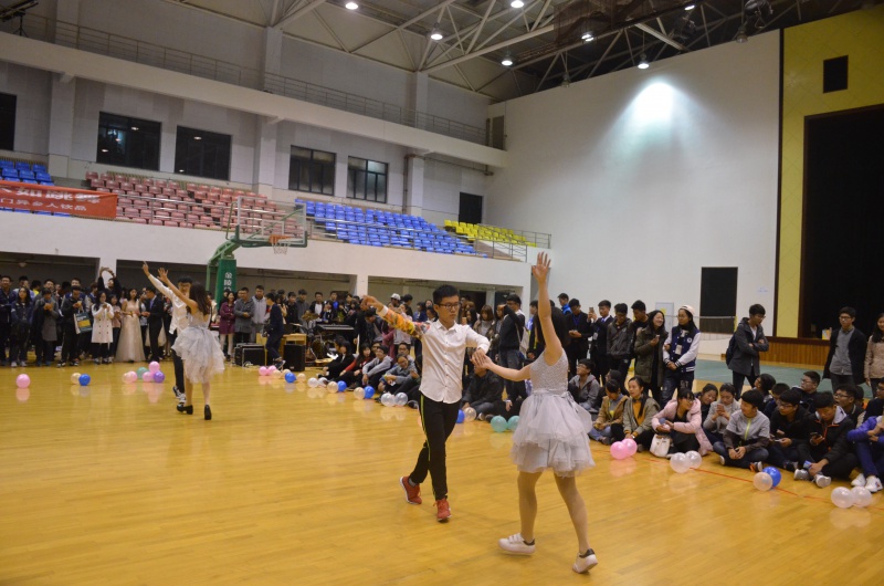晚会伊始,伴随着一段热烈的开场舞,四位主持人的开场白拉开了本次晚会的帷幕。在轻松愉悦的氛围下,兔子舞队的表演首先点燃了现场观众的热情,全场不少观众积极加入舞台尽情舞动。之后,主持人隆重请出了校交谊舞协会为现场带来第一段交谊舞表演,其中,男生都展现出绅士风度,女生也展现出柔情之美。紧接着,晚会迎来了土木学院的乐队演奏,欢快的声乐成功地拨动了在场观众的心弦,歌声感染了每一位同学。在歌声的回味中,大家迎来了本场第一个游戏――“一块五毛钱”,同学们配合默契,沉浸在游戏的快乐中,全场一片欢声笑语。在抽奖环节过后,“交谊舞自由跳”开始,同学们纷纷与舞伴加入其中。之后是法学院带来激情澎湃的嘻哈舞蹈以及数学与信息科学院带来优雅的古典舞蹈表演,这使本次晚会进入高潮。而后,本场第二个游戏――“最佳拍档”悄然而至,在游戏中,他们收获了快乐,也收获了友谊。第二轮抽奖环节过后,迎来了第三段交谊舞表演,大家在舞池中陶醉于音乐,翩翩起舞,赢获阵阵掌声。在4k影视 集体舞表演之后,主持人颁布了舞王舞后奖以及最佳拍档奖。