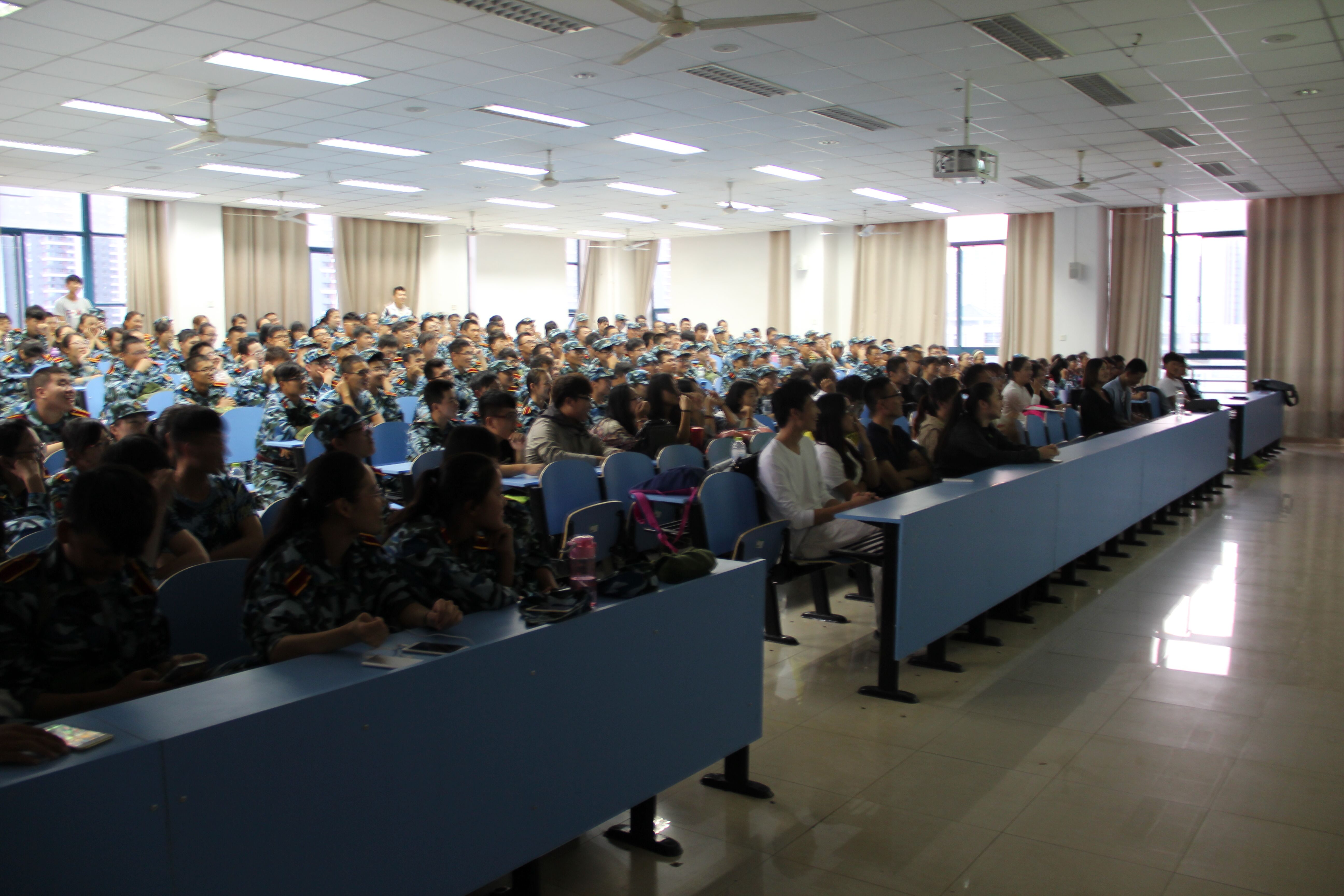 首先,蔡新海老师讲话,他表示:分团委学生会为同学们提供了一个自我展示的平台,让大学生活更加缤纷多彩。希望新生能够根据自己的兴趣和特长,踊跃加入分团委学生会。随后,分团委学生会十八个部门悉数登场,通过精心制作的PPT分别从部门职能、工作活动、人员组成及活动成果等方面进行了详细介绍。尽管结束了一天军训的新生们倍感疲惫,但精彩的PPT演示、幽默风趣的讲解吸引了同学们的眼球,博得了新生们的阵阵喝彩,自始至终同学们都认真观看并记录。最后,蔡新海老师进行总结讲话,为会议画上了圆满句号。