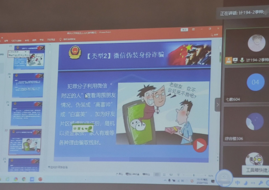 为进一步加强校园安全管理,增强新生安全意识,建设和谐的校园环境,4k影视 于10月2日利用“现场+腾讯会议”双重模式开展了大学生安全教育讲座,4k影视 保卫处治安科科长张杰担任讲解人。