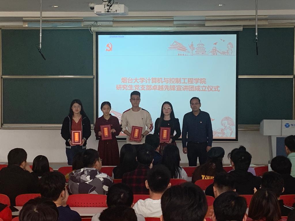 为全面贯彻落实习近平新时代中国特色社会主义思想,以榜样力量带动学习氛围,夯实基层党建工作,4k影视 研究生党支部于10月20日在综合楼322召开“卓越先锋宣讲团”成立仪式。党总支组织员丁晓丹及全体研究生参加成立仪式。