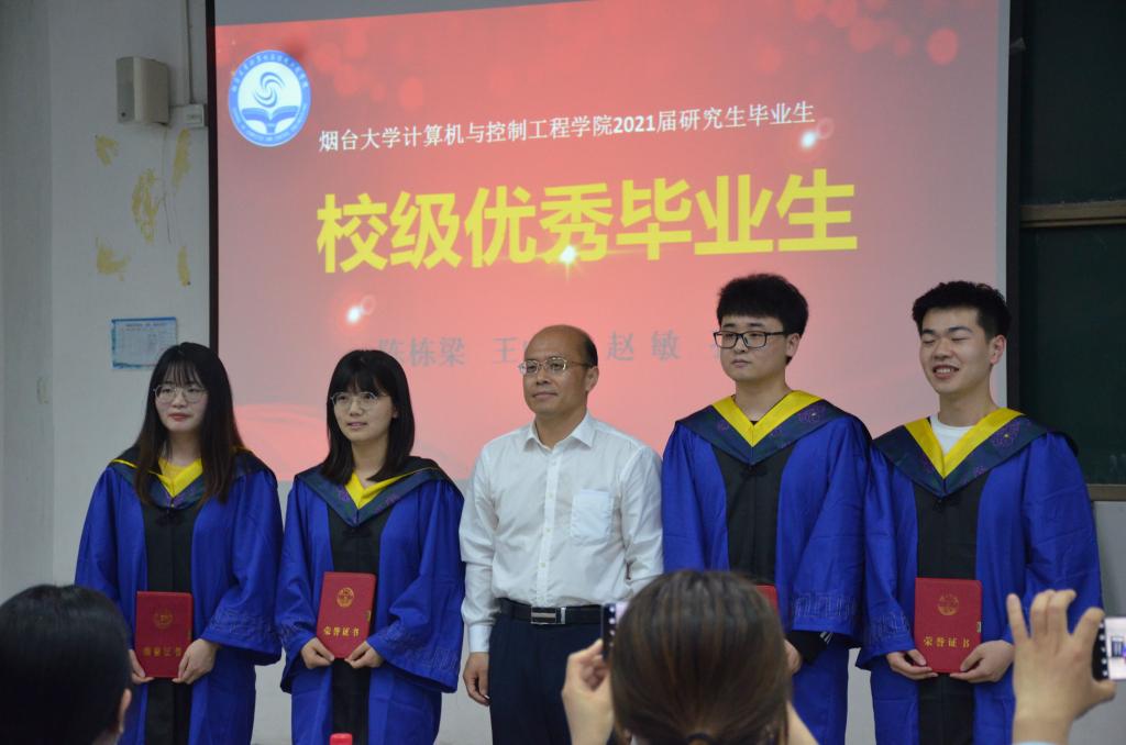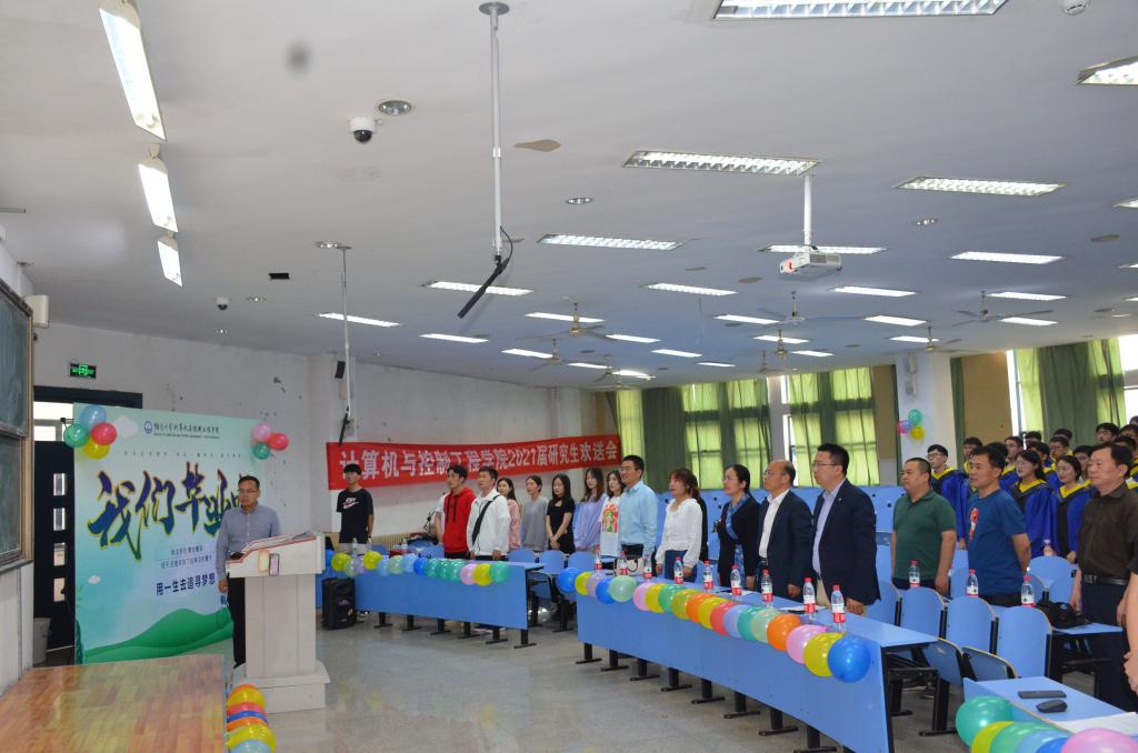本次欢送会在激昂的国歌中拉开帷幕,童向荣首先发表讲话,他向2021届毕业生表示祝贺,寄语毕业生们们坚定理想心系国家,把个人的理想目标同民族复兴的宏大目标结合起来,坚持终身学习理念,不断与时俱进,成为有理想、有本领、有担当的优秀青年。接着,张楠作为导师代表对毕业生进行临别寄语,他在表达不舍的同时,也对同学们提出殷切的希望,希望同学们牢记守信、求实、好学、力行的校训,脚踏实地,勇往直前,在各个岗位上发光发热,展现青春力量。随后,毕业生代表陈栋梁、研究生代表刘文选分别上台发言,他们表达了对母校和老师的感恩之情,同时寄语学弟学妹们脚踏实地、珍惜时光、奋发向上。最后,秦月红、童向荣为优秀毕业生颁奖并合影留念。