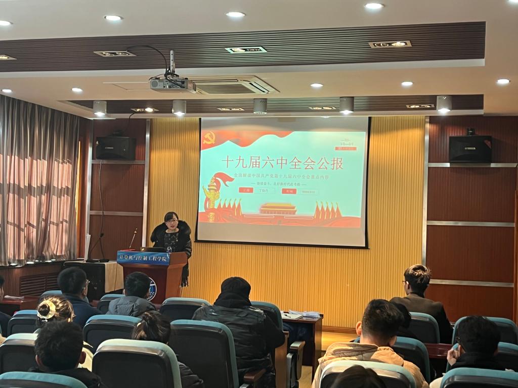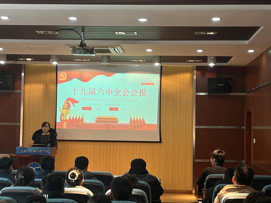 丁晓丹在宣讲活动中分析了党的十九届六中全会召开的背景以及党的十九届六中全会公报的主体内容,从“总结党的百年奋斗重大成就和历史经验的重大意义”、“党的百年奋斗重大成就”、“党的百年奋斗历史经验”、“不忘初心推进中华民族伟大复兴”四个方面学习了《决议》的重要内容。丁晓丹激励同学们进一步增强“四个意识”,始终坚持“四个自信”,从党的十九届六中全会精神中获取动力,在百年党史中汲取智慧,以史为鉴、开创未来,埋头苦干、勇毅前行,在新征程上担当新使命、展现新作为。至此,本次活动圆满结束。