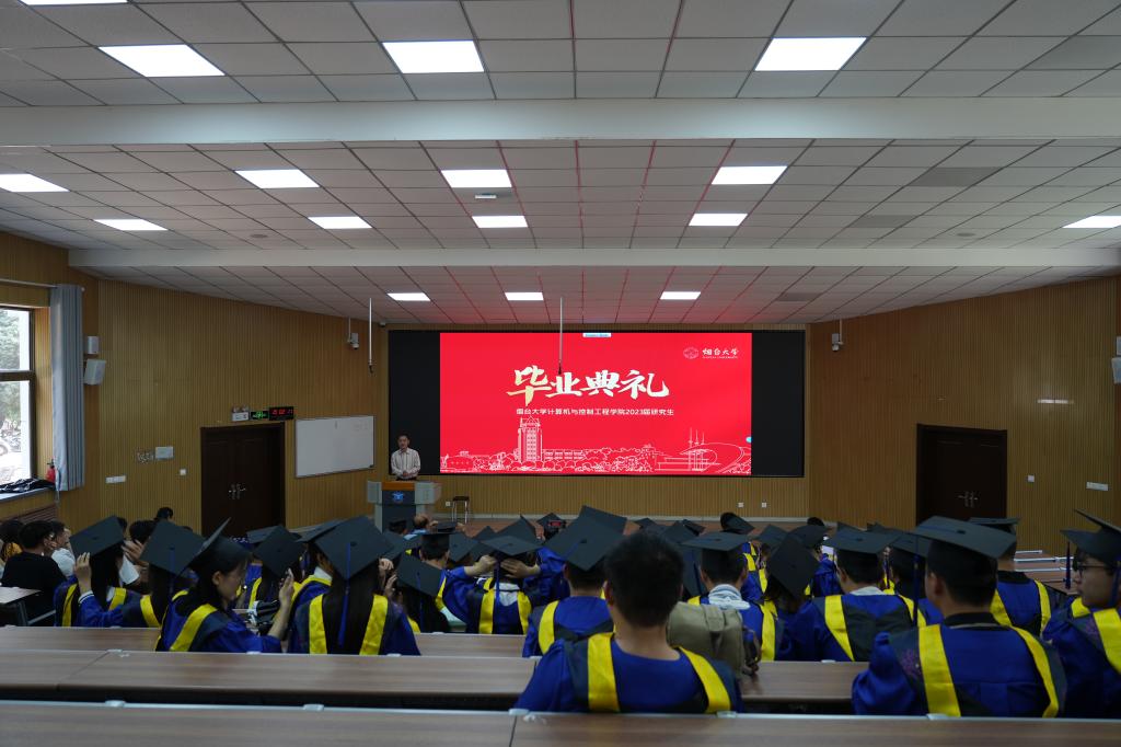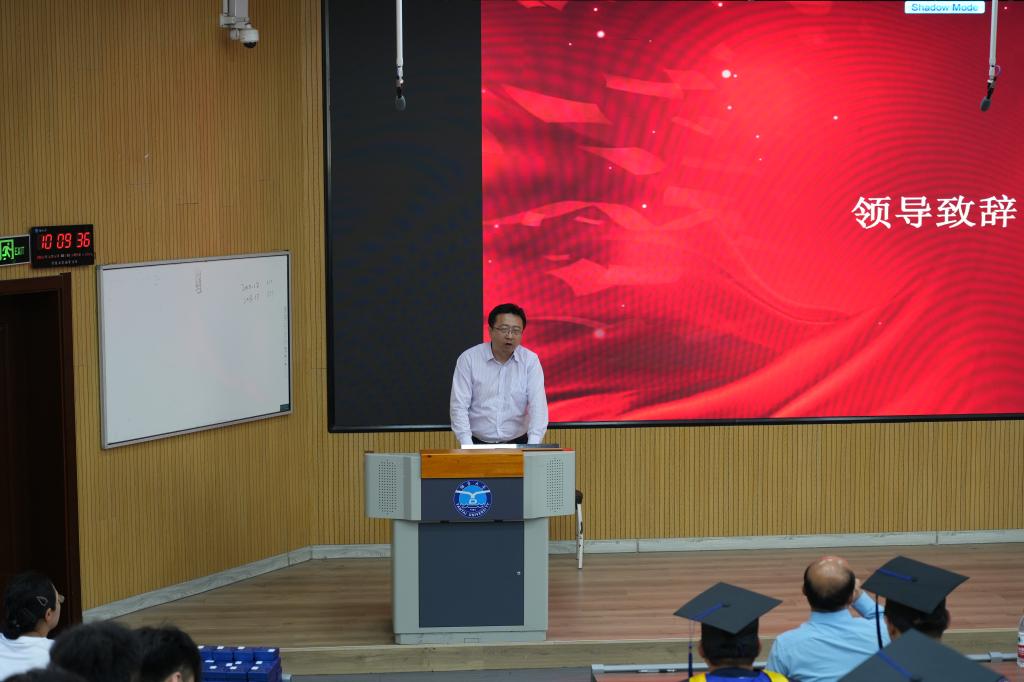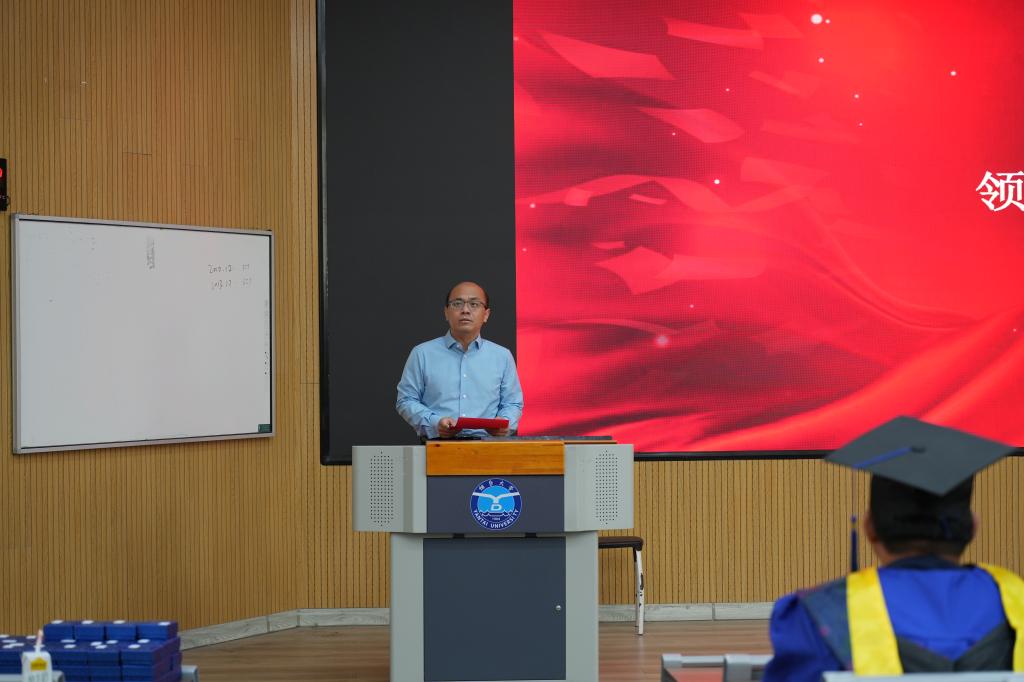 院长童向荣作毕业致辞,他向毕业生们顺利完成学业、即将开启人生新篇章表示祝贺,希望毕业生们始终保持学习的热情和求知的勇气,不断更新自己的知识和技能,适应社会的需求和变化,争取在激烈的竞争中脱颖而出。同时,勉励毕业生们保持对社会的责任感和使命感,用所学知识和技术为社会解决难题,推动科技进步,为人民的幸福展现青年担当。